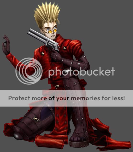 - Description: Vash the Stampede from Trigun. I'll add a background later. Done in Photoshop. (Yes, I made his face non-anime-ish.) I had to crop and shrink it for Go-Gaia Online's submission requierments. I also had a hard time getting a host for it.